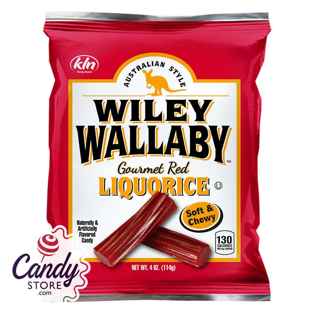 Wiley Wallaby Australian Style Red Liquorice 4oz Peg Bag - 16ct CandyStore.com